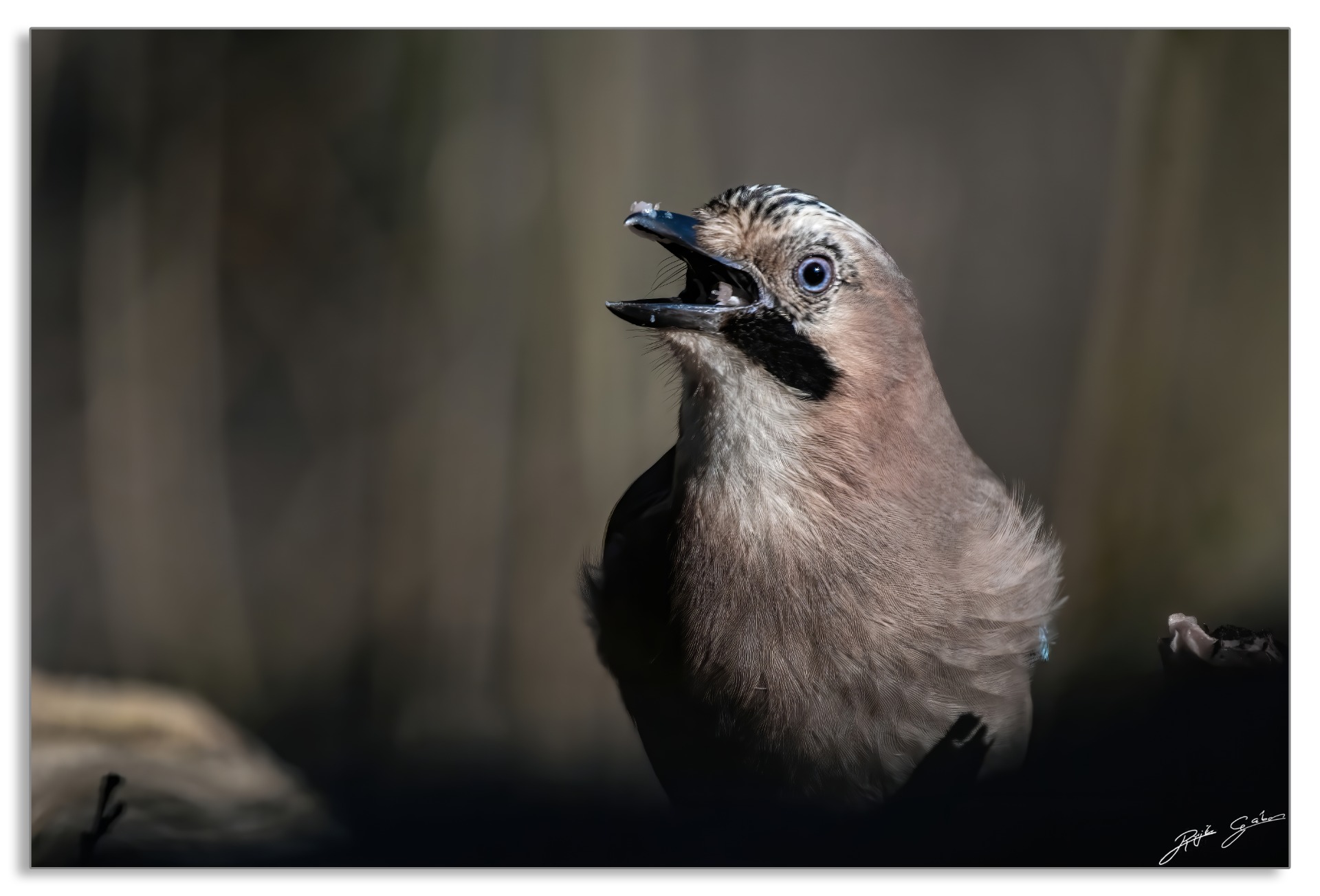 Nincs más választásom, mint törölgetni az üveget és bízni abban, hogy nem ijesztek el semmilyen madarat. Kisvártatva meg is jelent egy szajkó. Az volt az érdekessége a korai látogatásnak, hogy egészen közel, az itató mellé szállt le, ahova egy darab húst raktam, hátha közelebb jönne a róka. De ez a szajkó pont azt a húst szúrta ki magának. Mivel a vaku is ki volt helyezve, ezért tudtam értékelhető fotót csinálni, sőt... Egészen érdekesre sikerült.