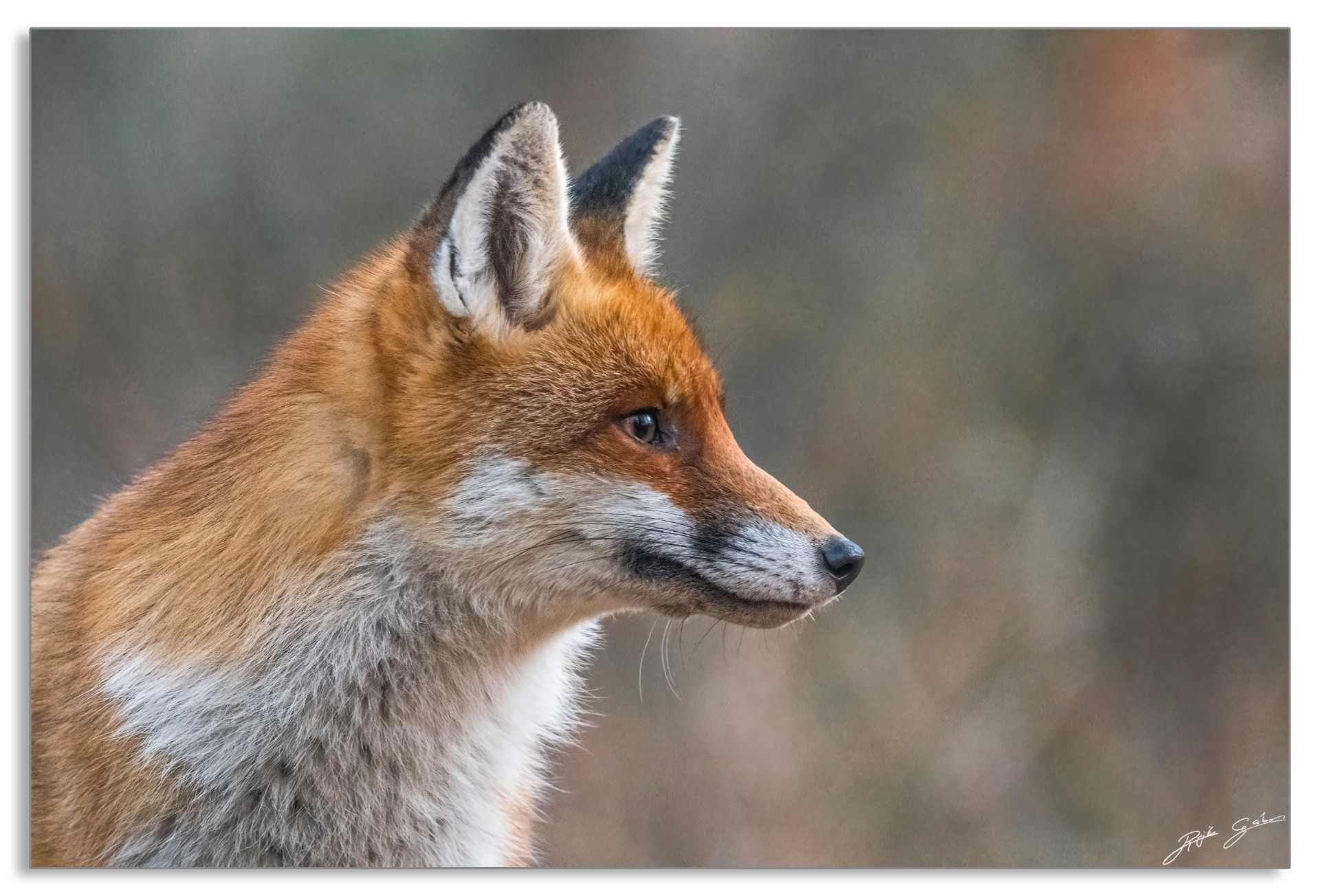 Még mindig nem az a fotó született meg, amit szerettem volna, de legalább találkoztam ismét a "szenes" pofájúval. Ismét talált magának egy darab húst, amivel elviharzott és közben én azon gondolkodtam, hogyan tudnám tovább maradásra bírni. Ekkor újra megjelent, szépen lassan közeledett. A fülei mindig elárulják, hogy honnan közeledik és szerintem ettől olyan cuki ez a róka. Már ott is van az itatónál, nem akartam, hogy felvegye a húst ezért elkezdem füttyögetni neki. Bejött, mert mindig, mikor hajolt le a húsért füttyentettem és olyankor vissza egyenesedett és körülbelül felém nézett.